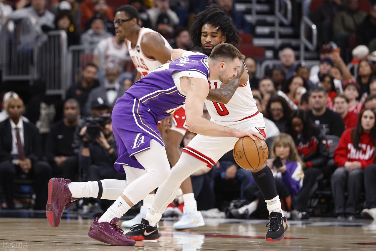 末节初段,公牛这边反击还在继续,詹姆斯带队效果是一塌糊涂,个人发挥堪称灾难。还得是东契奇回来以后,和斯玛特两人帮助湖人得分,但公牛这边继续追分,缩小到个位数,107-116以后公牛暂停。暂停以后,东契奇一人扛起球队,三分连中外加造犯规罚球,重新领先到了两位数,锁定胜局。